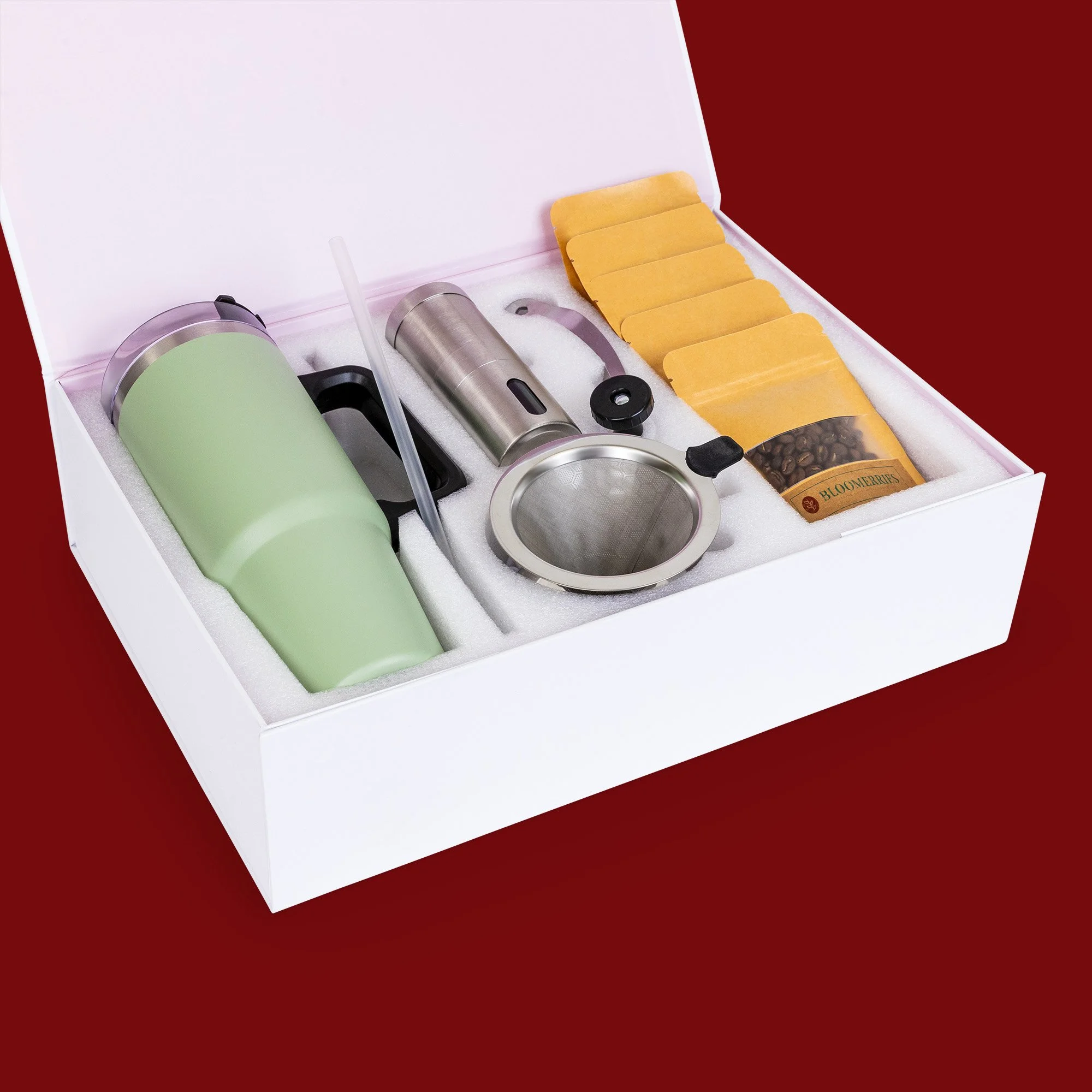 Assorted Coffee Beans + Grinder + Accessories + Travel Mug